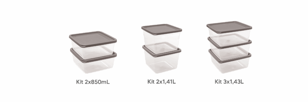Com cores modernas, a Slim oferece versatilidade e praticidade. Nos formatos retangulares e quadrados, são ideais para melhorar a organização, trazendo um maior aproveitamento de espaços nos armários e geladeiras.